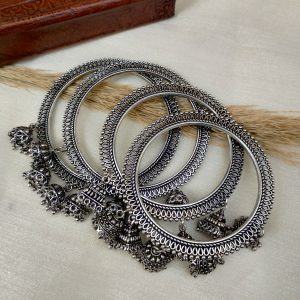 Oxidized 4 bangles with the dropping jhumkis Co...