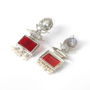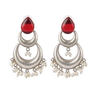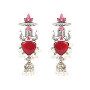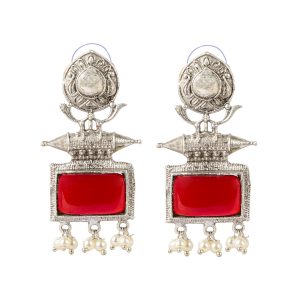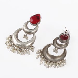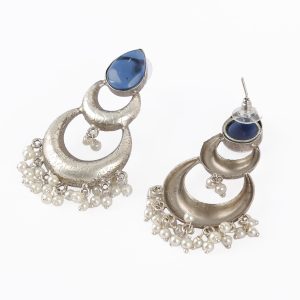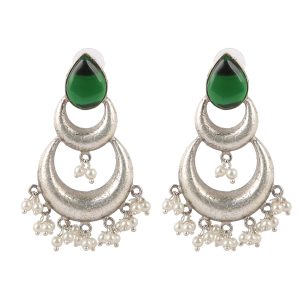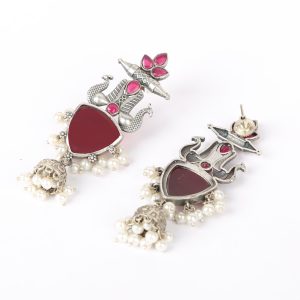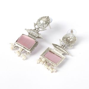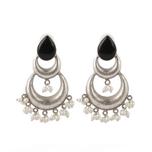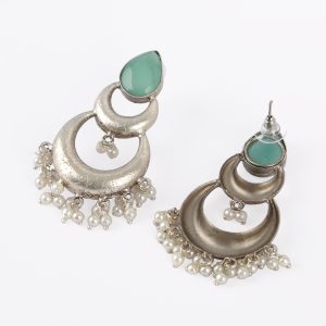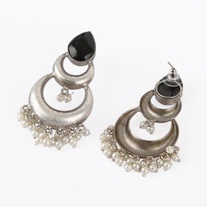 Oxidized Earrings with Monalisa stone and Pearls ...
