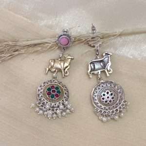 Oxidized Danglers with Monalisa Stone and Pearls ...