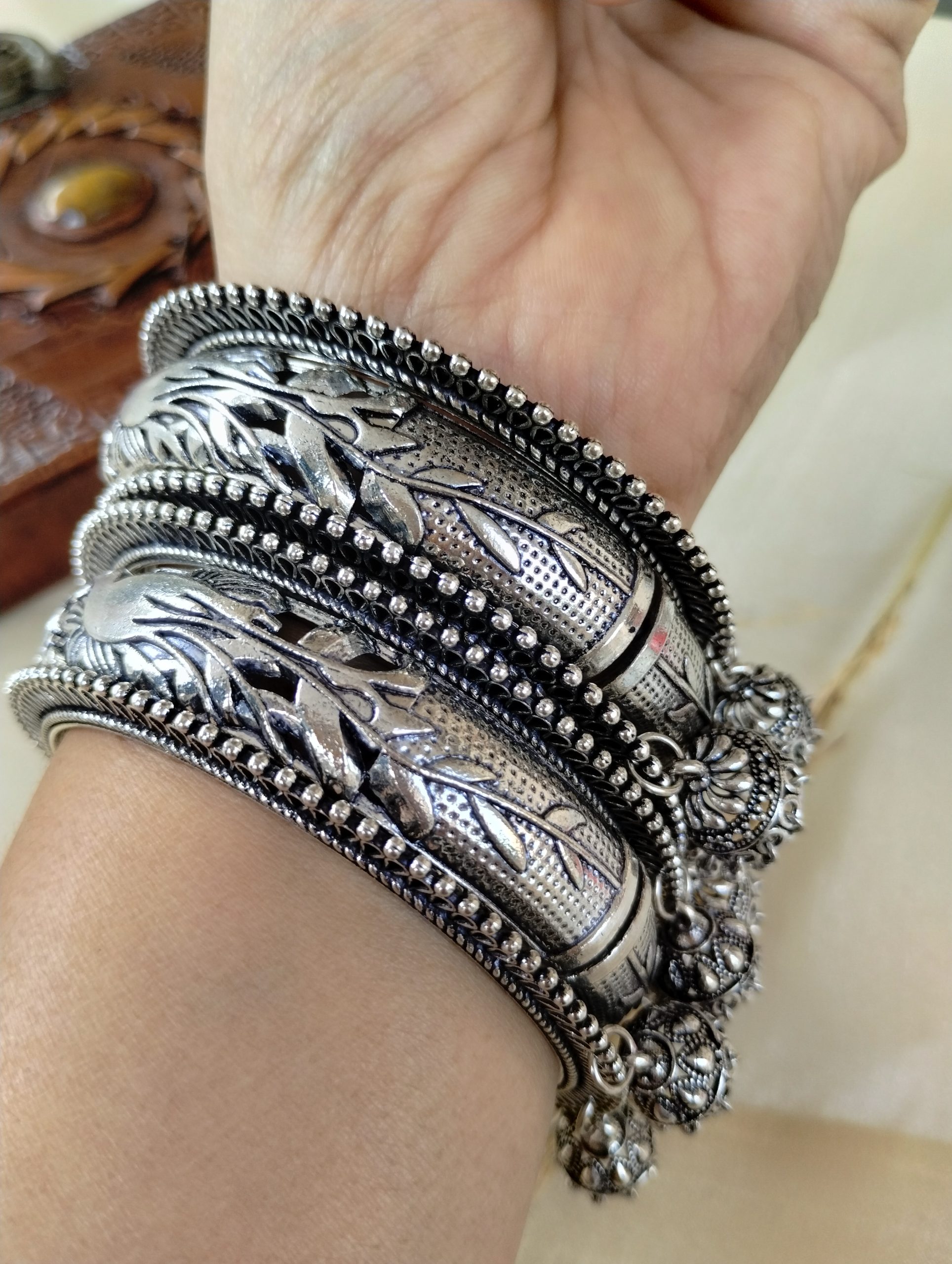 Oxidized Jhumkas with Monalisa stone and pearls ...