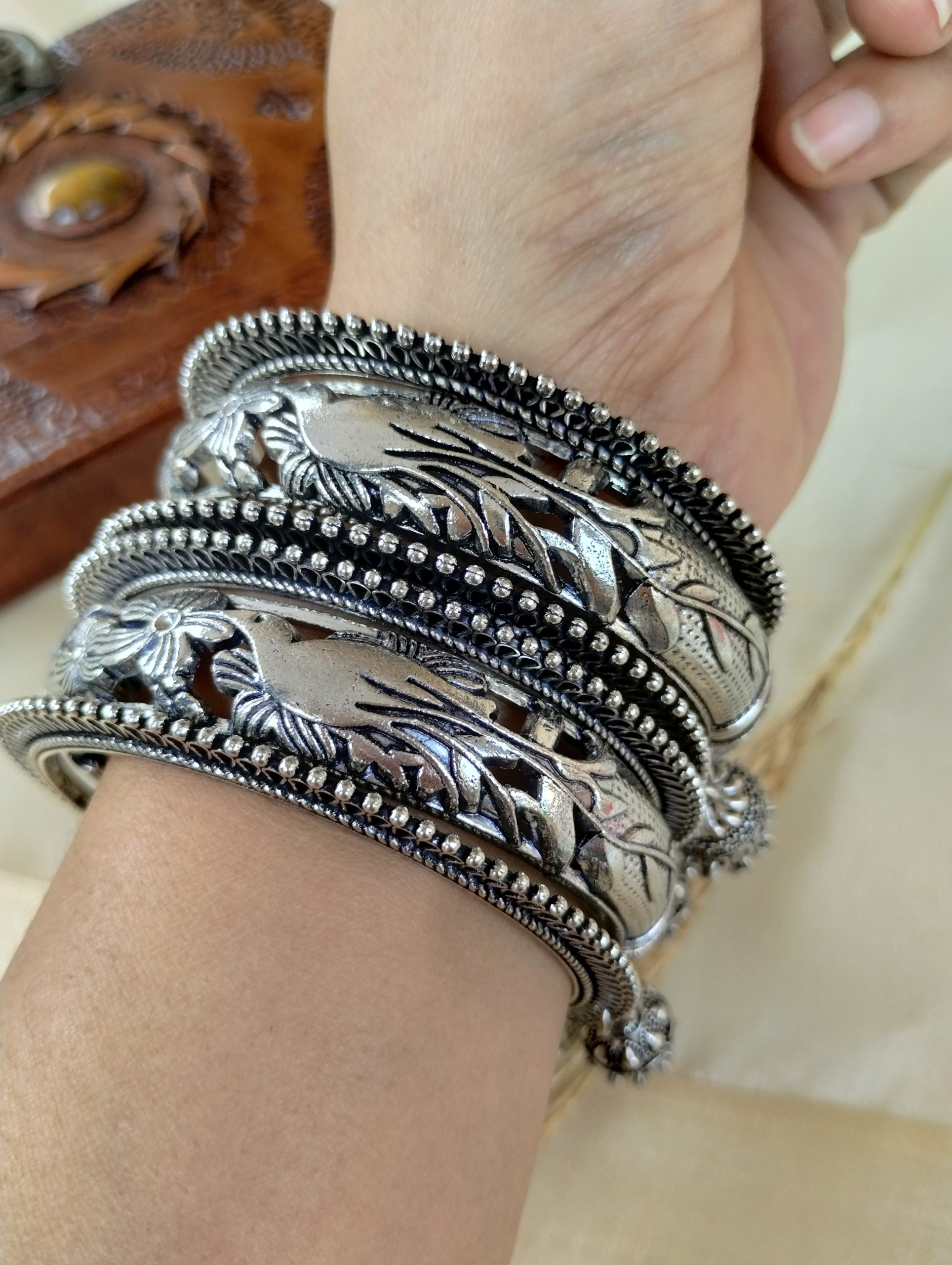 Oxidized Danglers with Darjeeling Stones and Pearl...