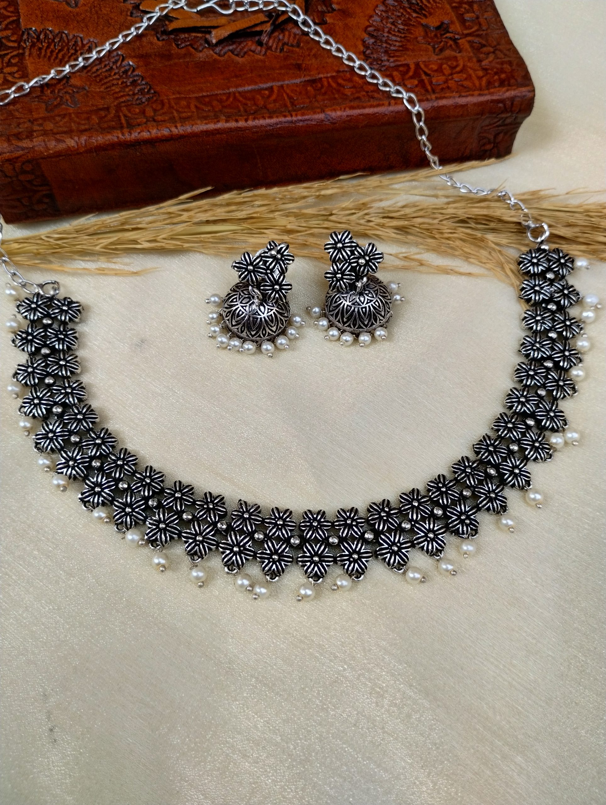 Oxidized Jhumkas with Monalisa stone and pearls ...