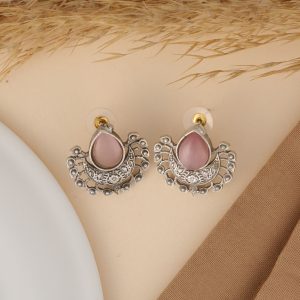Discover the elegance of Avi fancy studs, featuring a silver-look stud pattern and crafted from durable brass material. These lightweight oxidized earrings are designed with a push back closure and stopper for a secure fit. With vibrant pink artificial stones, these ethnic, traditional, and festive earrings are perfect for women seeking unique and stylish earrings designs.