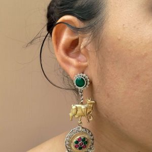 Oxidized Danglers with Monalisa Stone and Pearls
