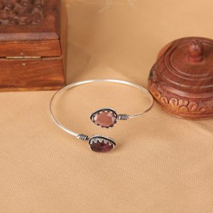 Discover the Pankti Bracelet – a stunning adjustable kada with a silver-like finish, crafted from brass and featuring a purple artificial gemstone. This oxidized vintage bracelet is the perfect festive accessory, offering an affordable and lightweight design. Ideal for women, it adds a touch of elegance to any occasion with its beautiful hand-crafted style