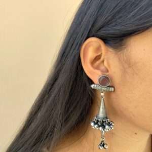 Oxidized Danglers with Monalisa stone and Gungharoo