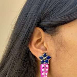 Oxidized Handpainted Earrings with Darjeeling stone